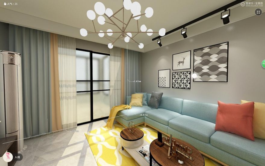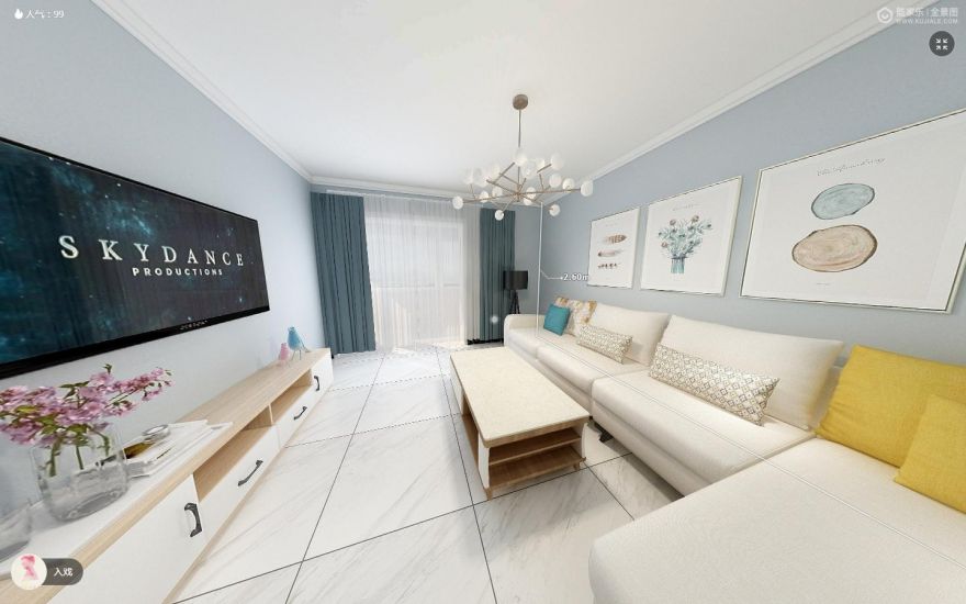 360度全景案例展示-通用博园86平米三居室北欧风格方案